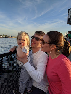 After nap time, we headed to the Coronado Ferry for Rosalee's first boat ride! I was trying to prepare her for our exciting journey, so in the car ride over we got the point where she'd fill in "boat" and "wa-wa" in the sentence, "We're going to the water and we're going to get on a boat." She would focus on me hard while she was getting the words-it was so cute!